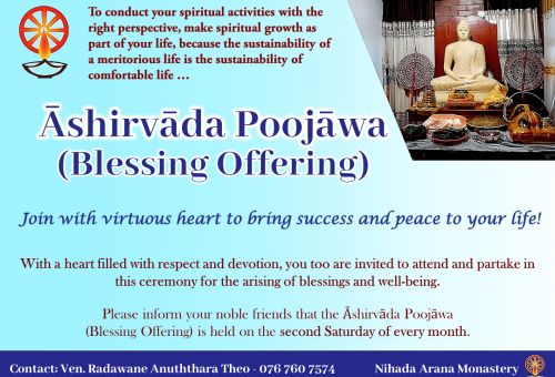 The Nihada Arana Monastery provides more benefits for the laymen and Sangha; not only limited to, residential facilities, mediation facilities in the center for Dhamma programs with the association of “Kalyana-Miththa”, dedicated programs to work on and the real guiding of Dhamma practices.